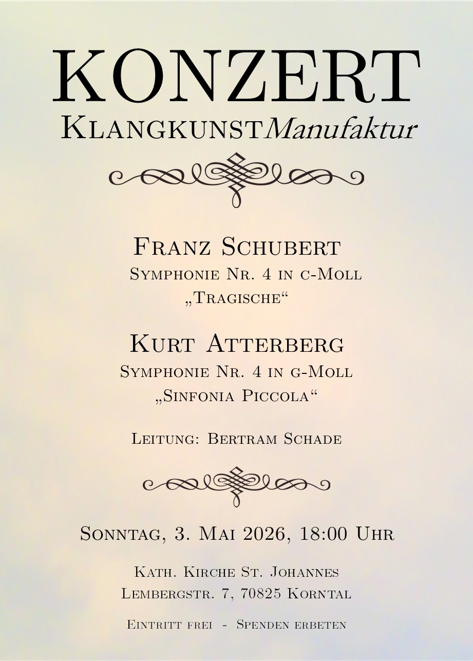 Wir - die KlangkunstManufaktur Stuttgart e.V. - sind ein Projektorchester, das pro Jahr in zwei Projekten zu jeweils zwei Arbeitsphasen zusammenkommt, um gemeinsam ein Konzertprogramm zu erarbeiten. Die Arbeitsphasen je Projekt finden dabei im Abstand von zwei Wochen statt. Trotz der intensiven und konzentrierten Probenarbeit kommt der Spaß nicht zu kurz.